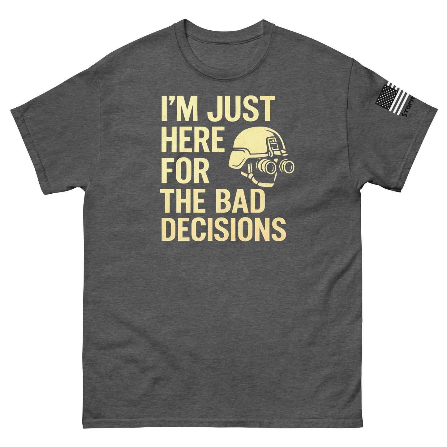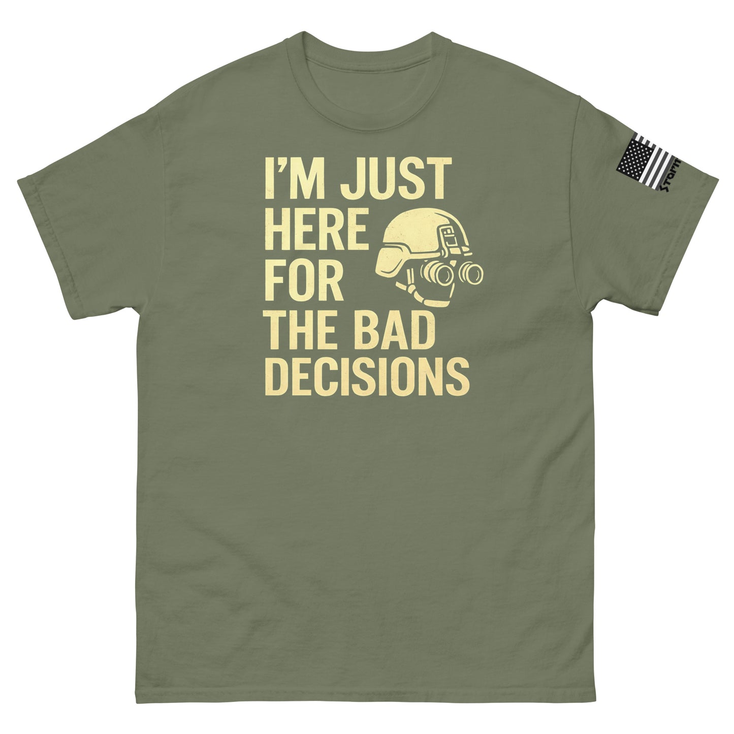 Designed with gritty humor and a military attitude, this tee is perfect for veterans, active duty, or anyone who's ever made questionable choices with full commitment.
