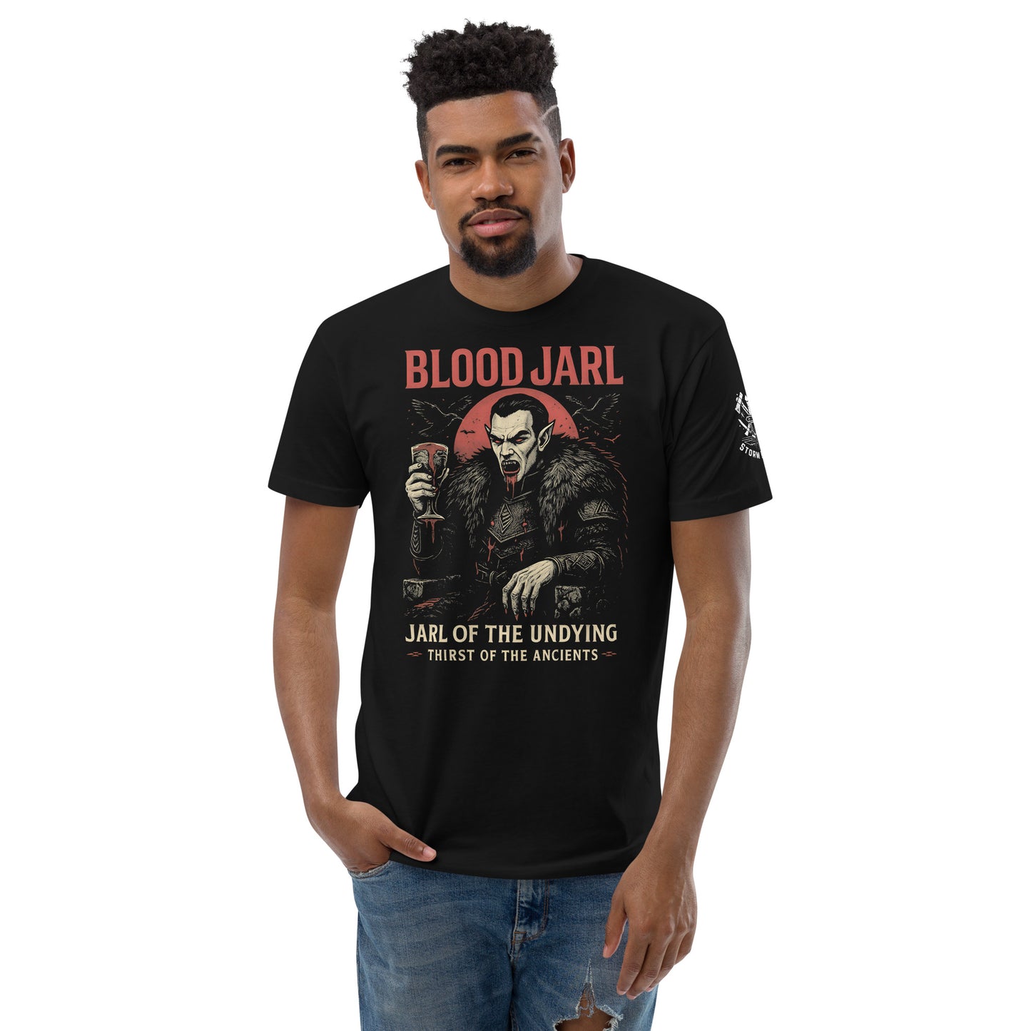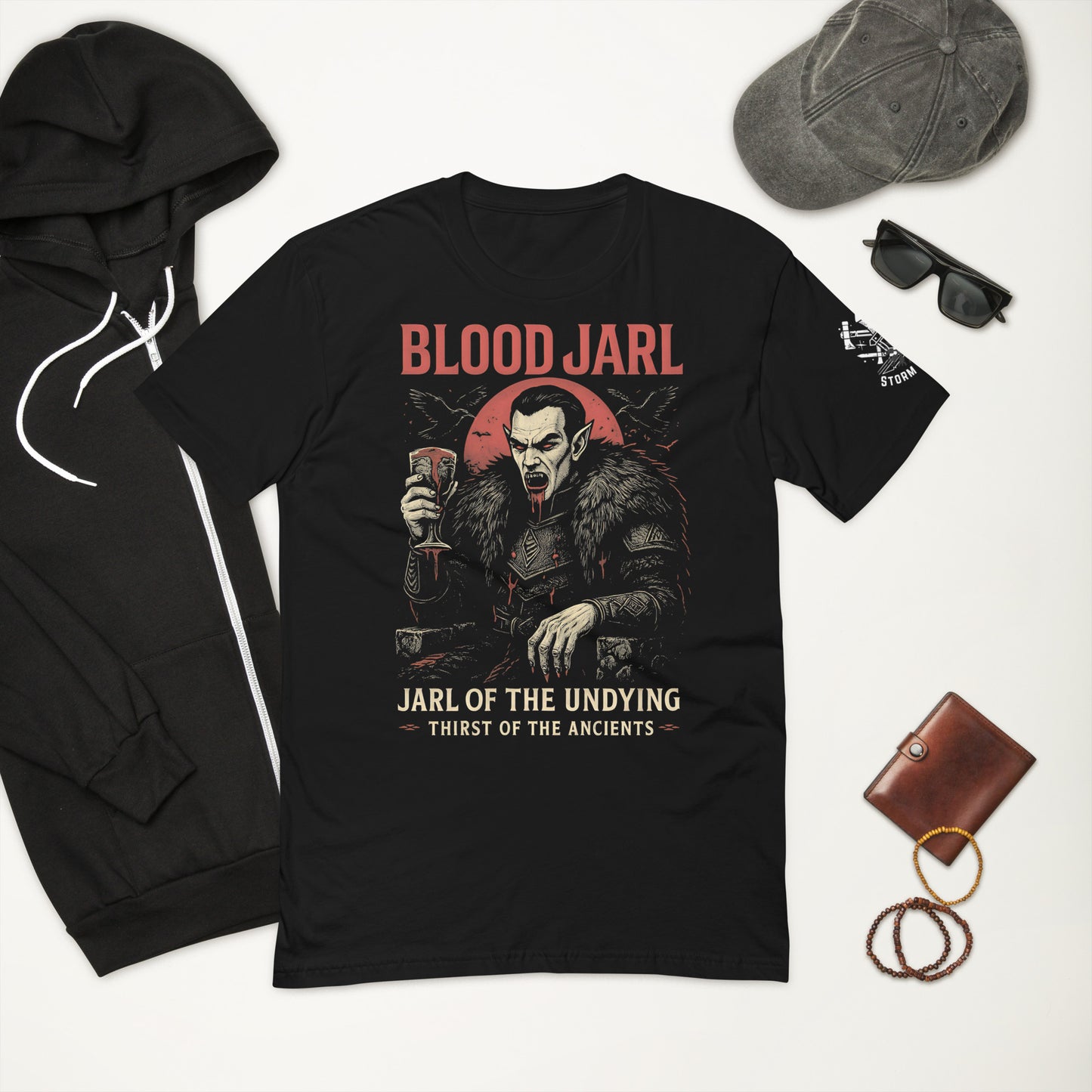 Step into the shadows with Blood Yarl, Yarl of the Undying — a striking fusion of vampire lore and fierce Nordic heritage. This graphic tee blends dark vampiric mystery with the power and prestige of a Viking chieftain. Perfect for fans of gothic style, vampire tales, and Nordic-inspired fashion, it’s a bold statement of immortality and strength. Crafted from soft, comfortable fabric, this shirt is ideal for embracing your darker side with Nordic pride.