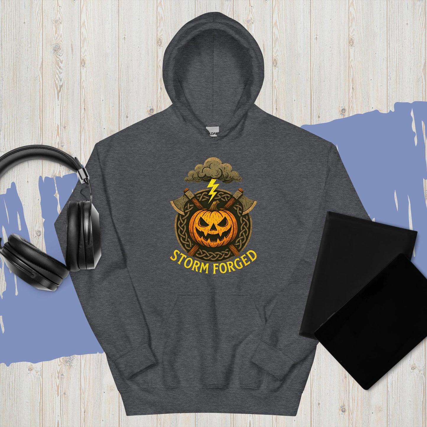 Carry the shadow into the cold with the Night Harvest Hoodie. Featuring a carved pumpkin flanked by crossed axes, this design is a Nordic-inspired ward against restless spirits, blending gothic horror with warrior strength. Built for comfort and durability, it’s perfect for layering on chill nights or standing out wherever darkness gathers.
