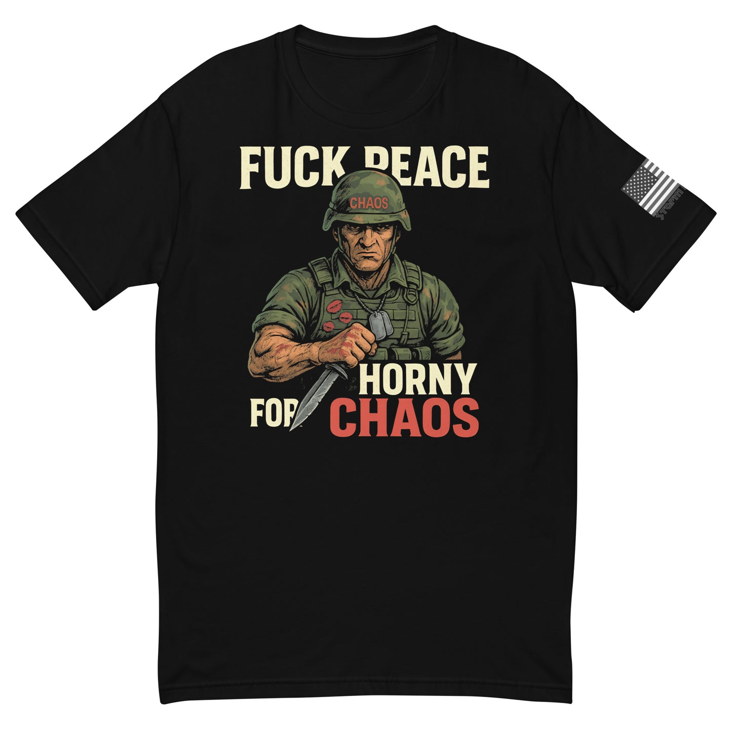 This shirt is for those wired for war, not wellness. The ones who laugh in the face of order and make chaos their playground. If you’ve ever been told to calm down — and doubled down instead — this is your uniform.