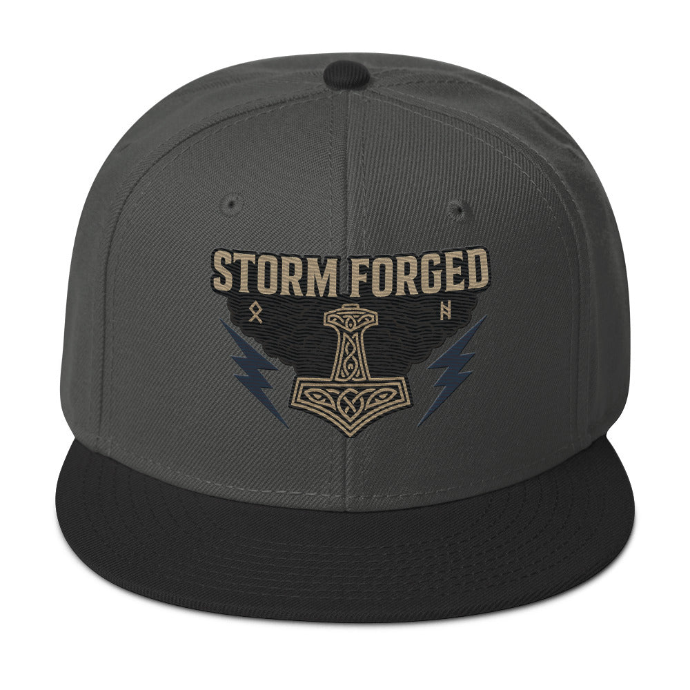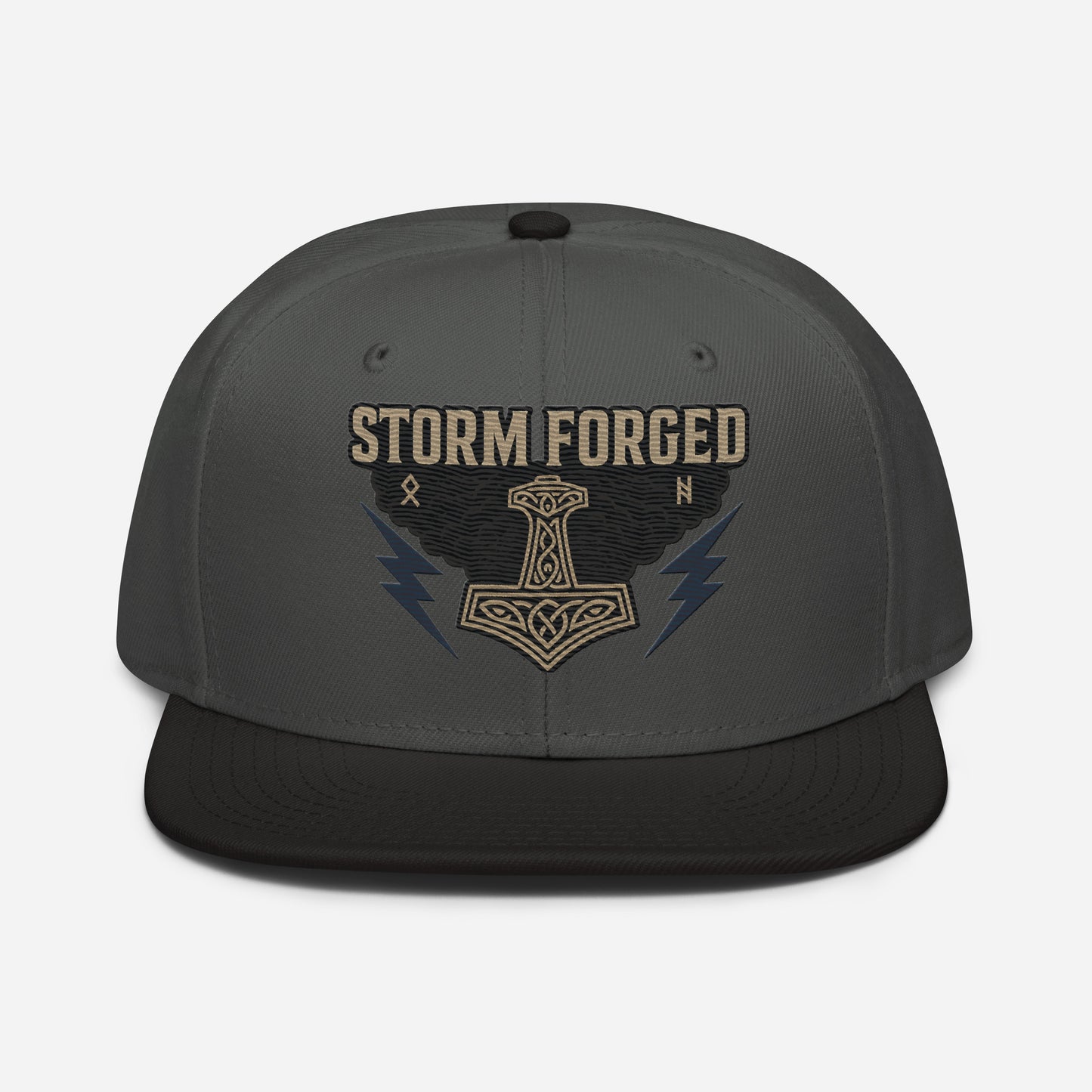 Storm Forged Snapback Hat – Norse Mjölnir Lightning Skull Cap