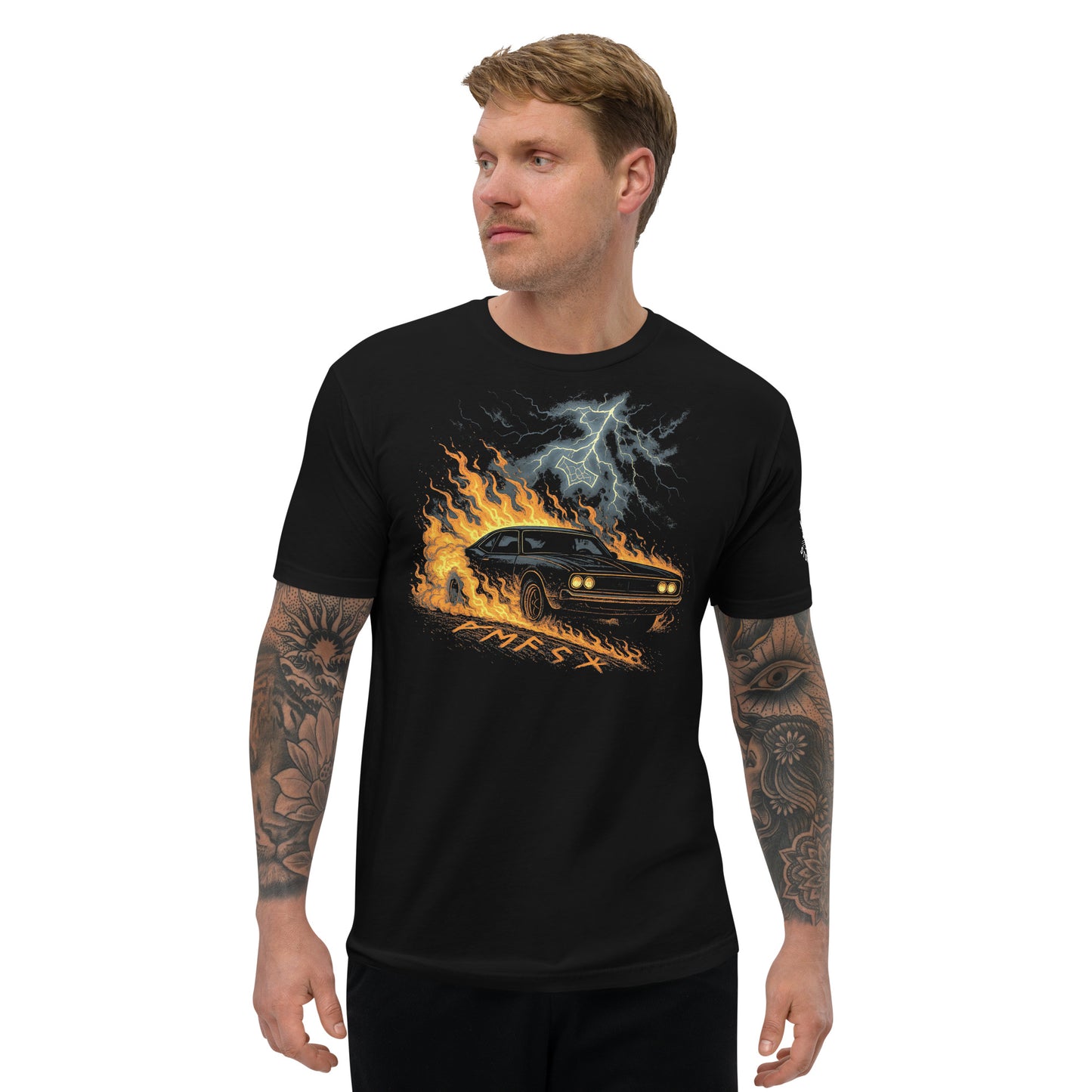 Where American muscle meets Norse power, the Thunder Burn Tee unleashes a storm of speed and fury. Featuring a Dodge Challenger-inspired beast, ripping a burnout so fierce it scorches the ground, while a bolt of lightning crashes down from the sky—forging into Mjölnir mid-strike. Flames rage beneath, thunder roars above. This isn’t just a burnout—it’s a divine event.